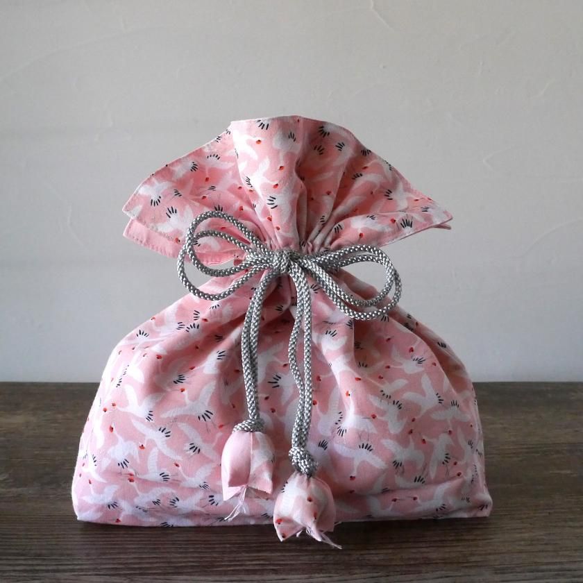 「FUGURO」は、その昔ながらの風習を再現し、リメイクしたものです。素材となるのは、箪笥に眠る何千枚もの中から選りすぐった、おめでたい文様の着物地。手にする人の幸せを願う気持ちをしっかりと縫い込めながら、一つひとつ丁寧な手仕事で仕上げています。